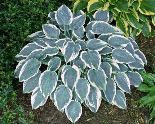 40-45cm magas évelő. Levelei kékes árnyalatúak krémes szegéllyel.